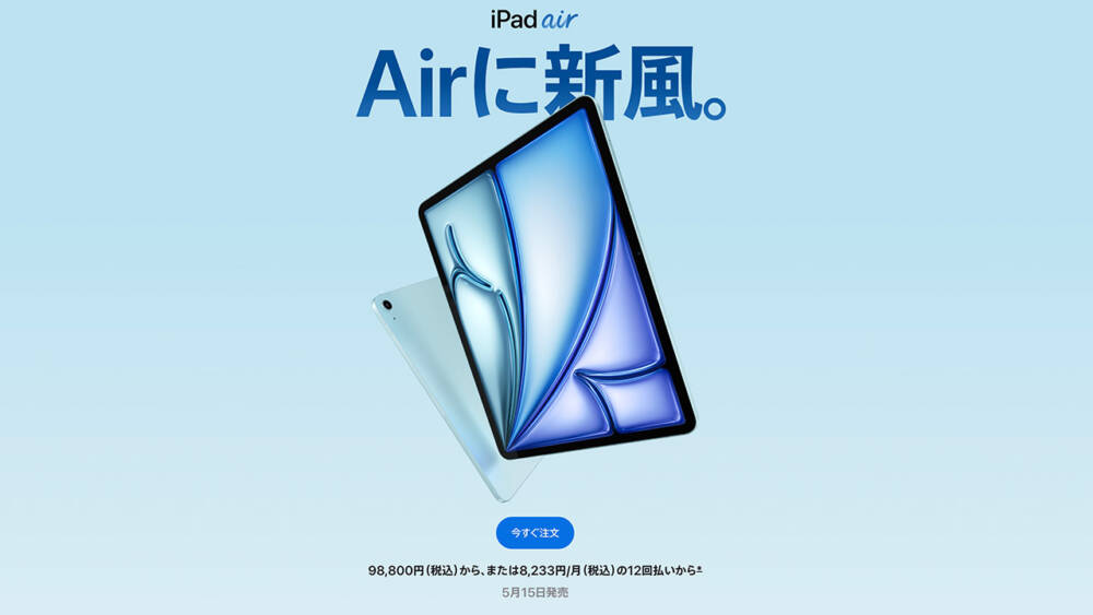 新型iPad Air(M2)発表!11インチは98,800円から、13インチは128,800円から