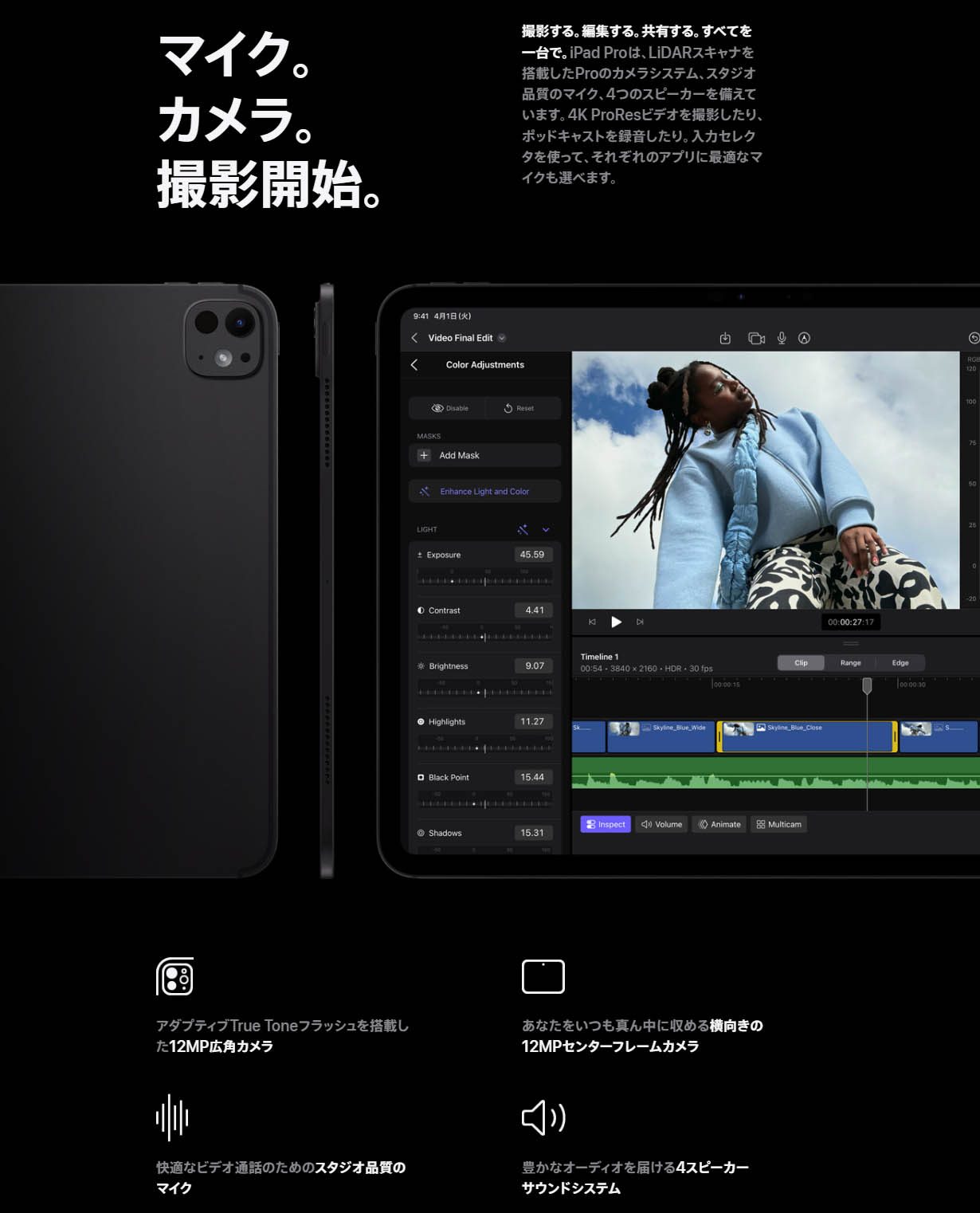 iPad Pro(M5)11インチ/13インチのカメラ/スピーカー・サウンド関連