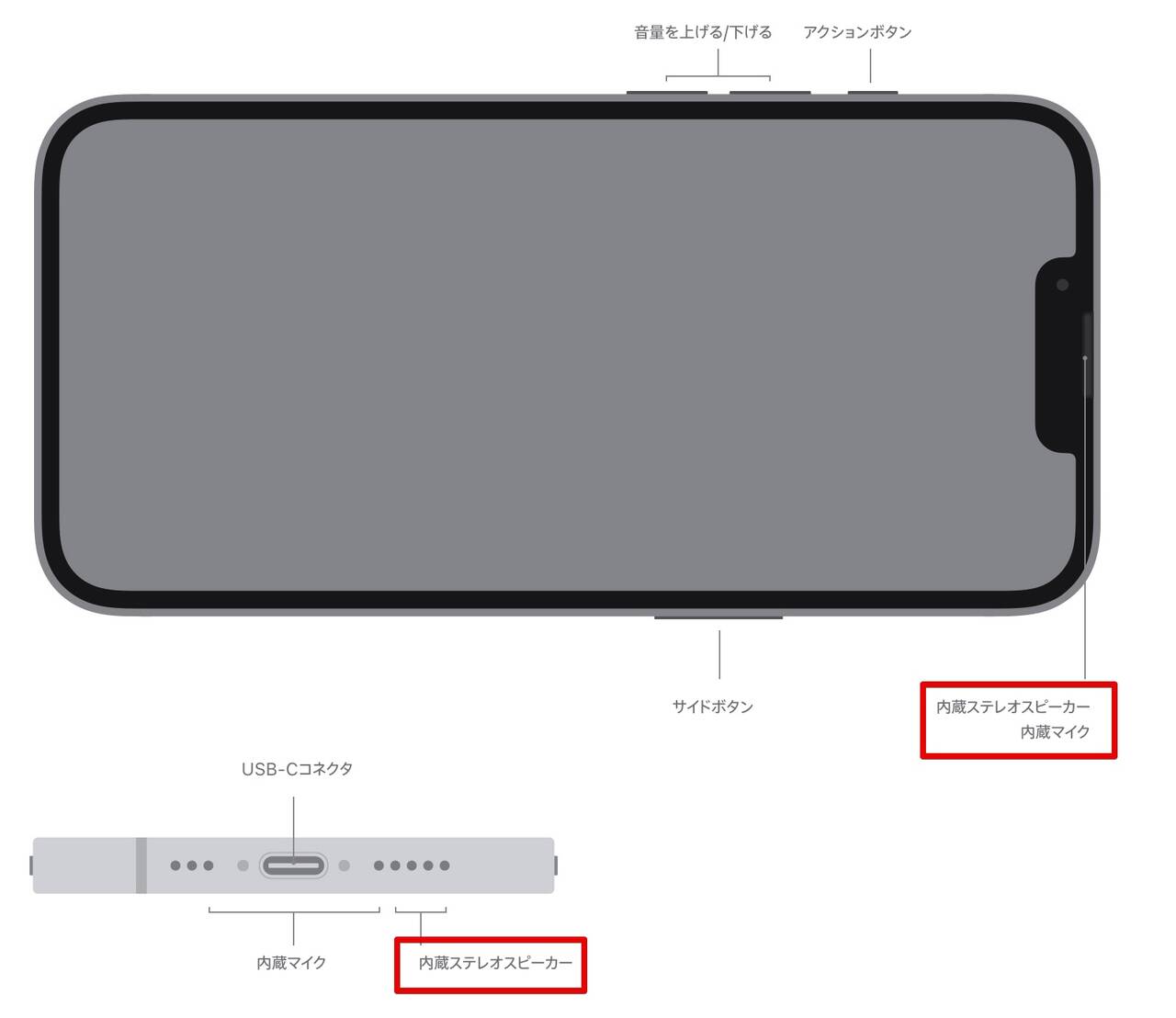 ▼iPhone 17eは、もちろんステレオスピーカーを搭載。↓