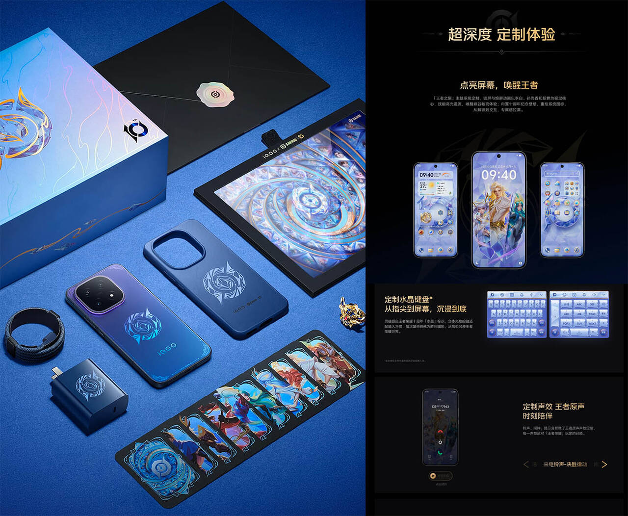 ▼ゲーム「Honor of Kings」とのコラボモデルであるiQOO×王者荣耀十周年典藏版は外観やケースなどのデザインはもちろんのこと、ホーム画面やキーボードなどもHonor of Kings専用仕様になっています。↓