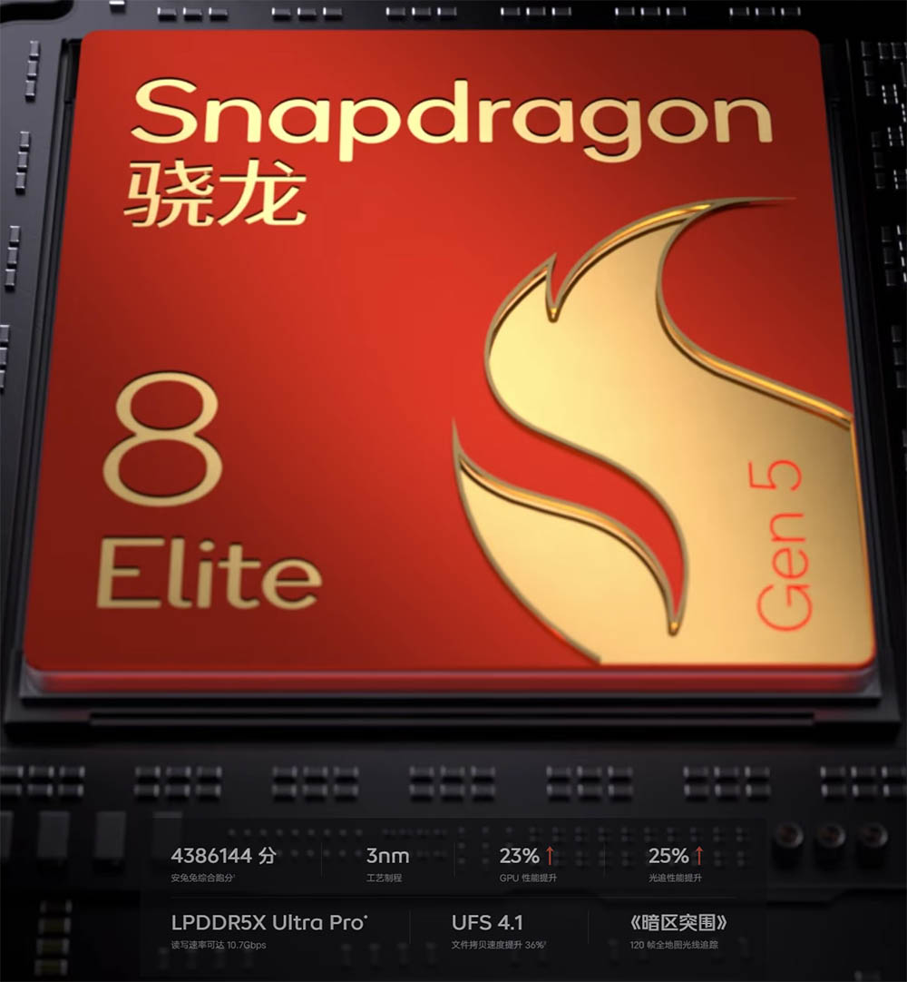 ▼SoCには執筆時点で最新の最上位クラスのSnapdragon 8 Elite Gen 5を搭載。↓