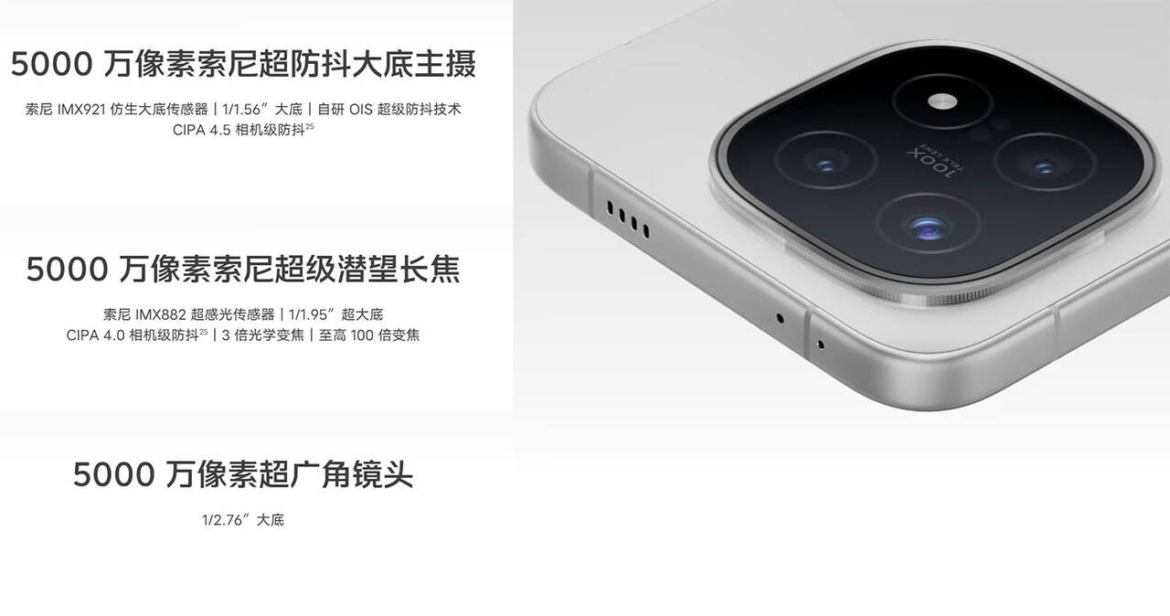 メインカメラは1/1.56″のIMX921、超広角カメラは1/2.76″のJN1、望遠カメラは1/1.95″のIMX882を搭載しています。