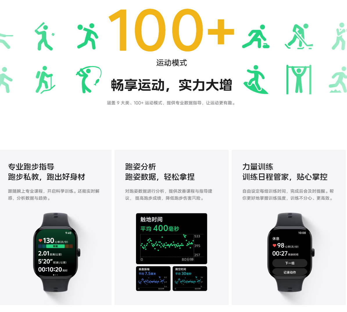 ▼100種類以上のスポーツモードにも対応しており、各種測定が可能です。↓