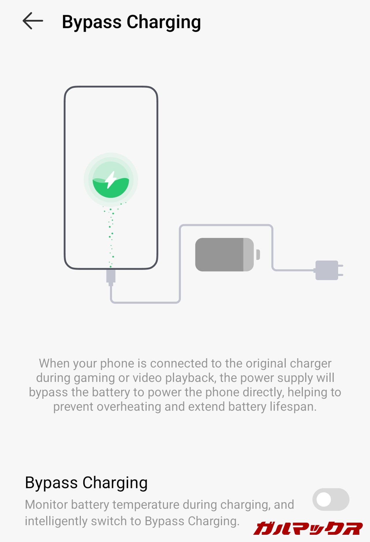 バイパス充電はバッテリーではなく本体に直接電力を供給する充電方法で、充電しながら使用してもバッテリーの劣化を抑えることができます。シーン問わずどんなタイミングでも実行可能で、ゲームプレイ時、映画視聴時、長時間撮影時などはもちろん、例えば車でナビ代わりにスマホを使いたい場合にも重宝する機能です。