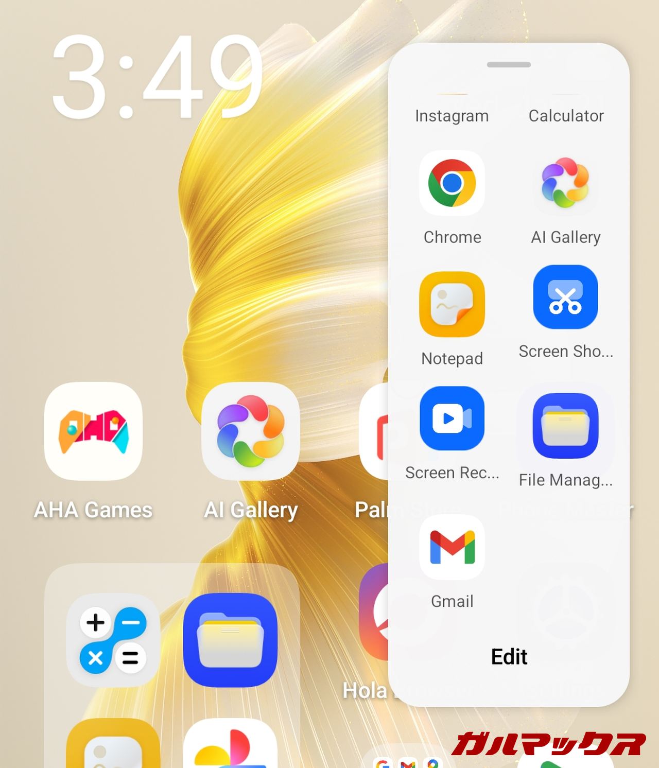 ▼ホーム画面はこんな感じ。ホームの一番左にはiOSのようにウィジェットを配置することができます(オフ可能)。↓
