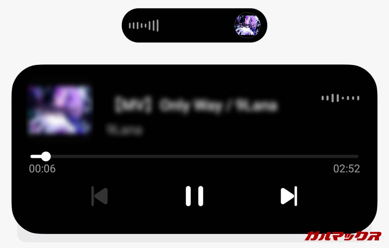 ▼「Dynamic Bar」という通知領域も搭載。音楽再生やタイマー、充電時などに表示することができます(オフ可能)。↓