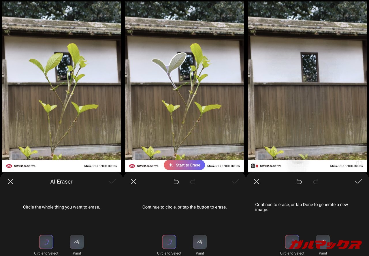 ▼AI消しゴムなどの編集機能も搭載されています。↓