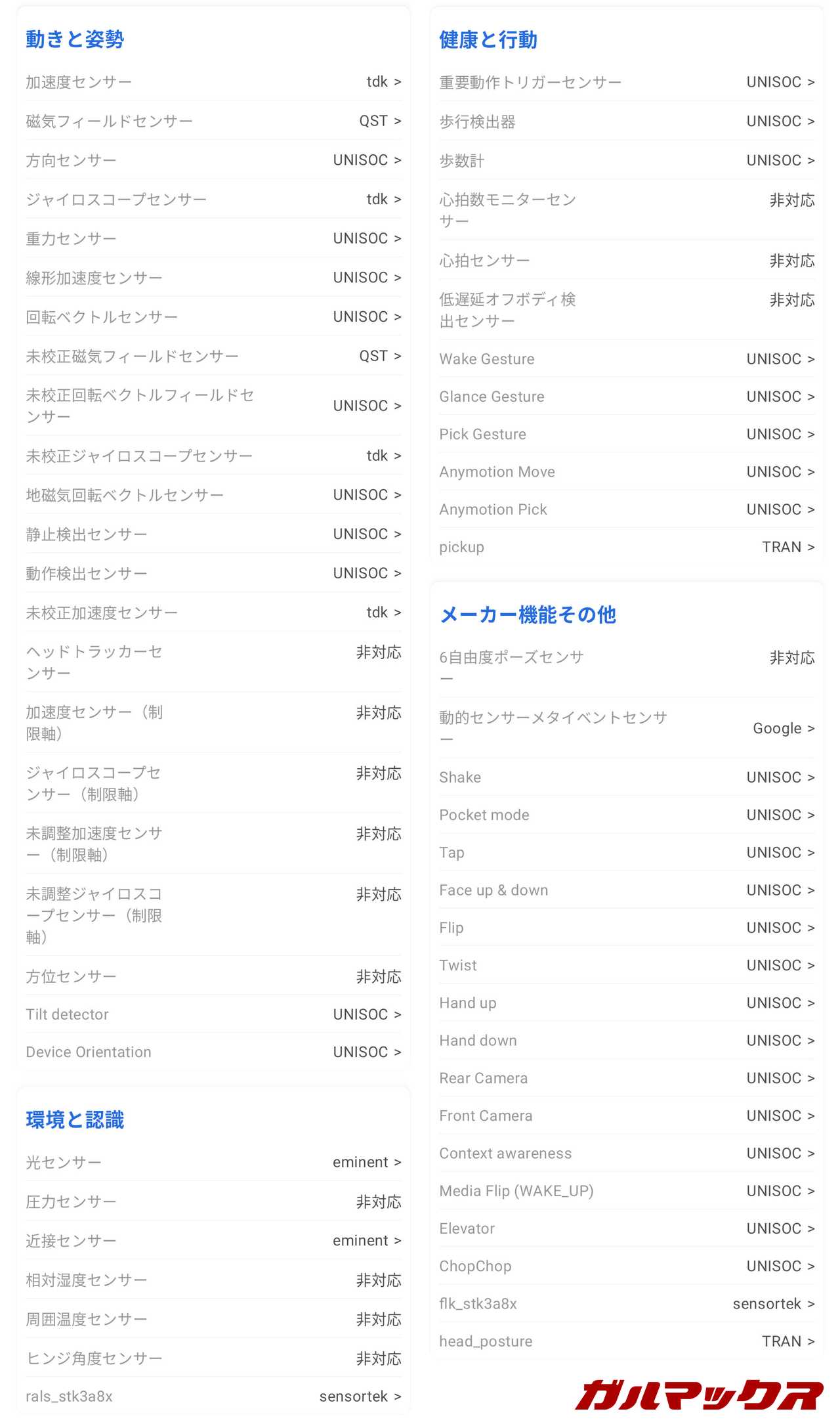 - マクロ:2MP、センサー名非公表、f/2.4、センサーサイズ不明