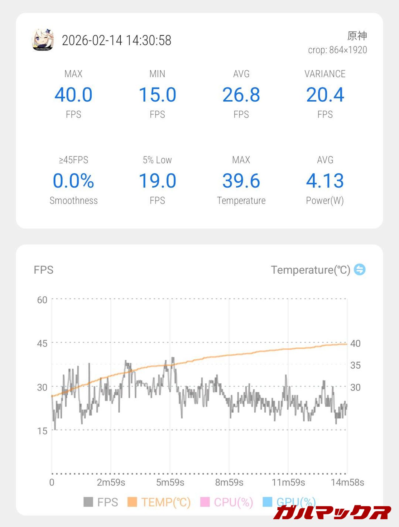 ▼重量級ゲーム「原神」を最低設定※1でプレイ(ナタ地域を探索&戦闘)。フレームレートは最大で40FPS、平均でも30FPSに満たずプレイは困難です。↓