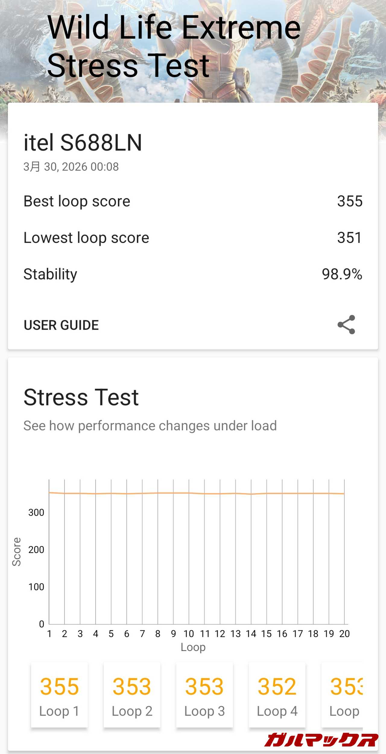 ▼3D Mark Wild Life Extreme Stress Testの結果はこちら。↓