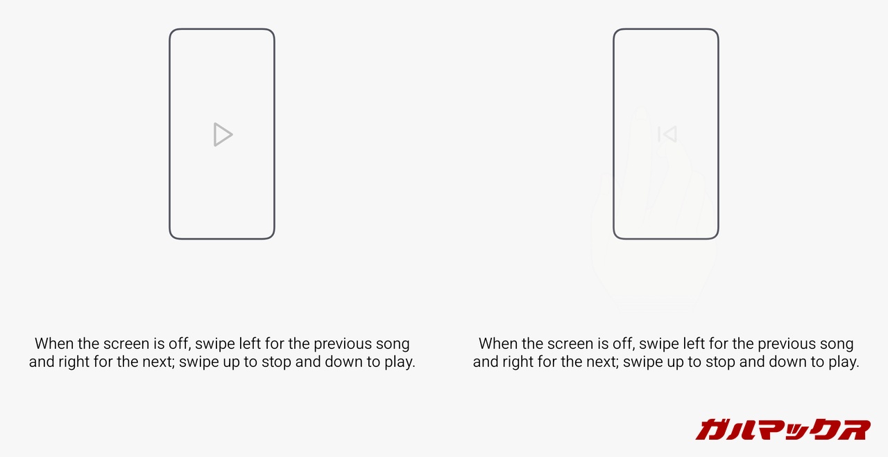 ▼また、YouTube、Spotifyなどの音声再生時に画面をスワイプやタップすることで、音楽の再生・停止、曲送りなどが可能な「Music Gesture」機能も搭載されています。↓
