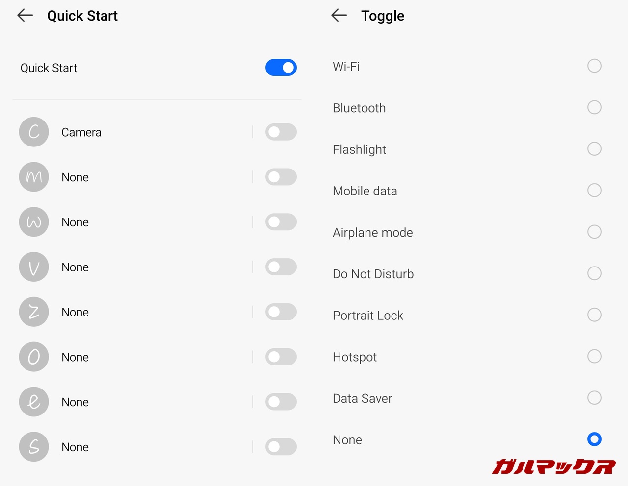 ▼画面消灯時に画面に特定の文字を書くと任意のアクションを実行できる「Quick Start」機能。Wi-FiやBluetoothのオンオフやアプリの起動を割り当てることが可能です。PayPayなどの決済アプリを割り当てておくと便利!↓