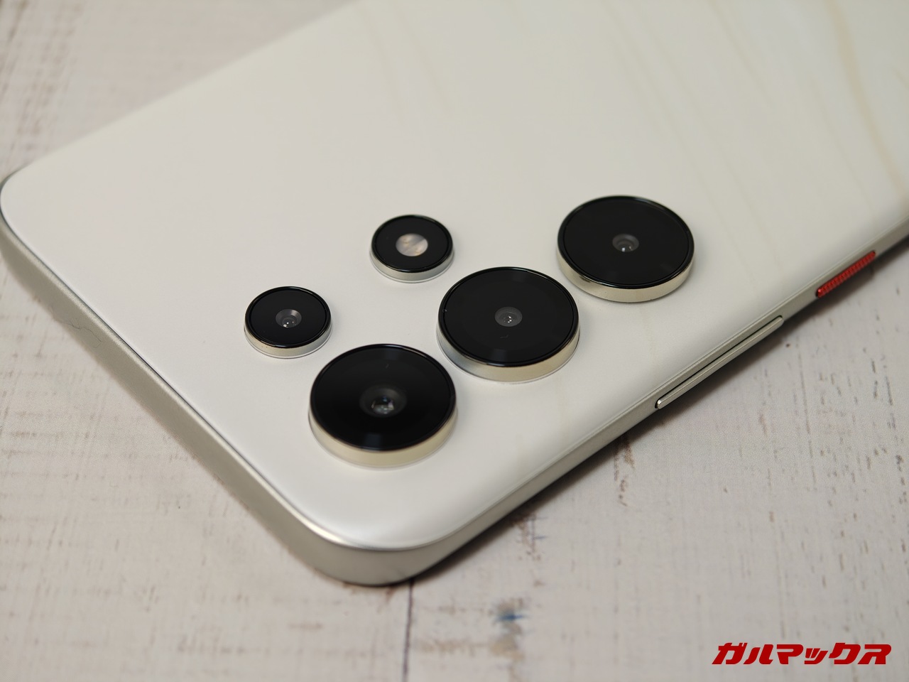 ▼カメラバンプはクアッドカメラのように見えますが、メインカメラとマクロカメラ以外はIRブラスターやダミーカメラになっています。↓