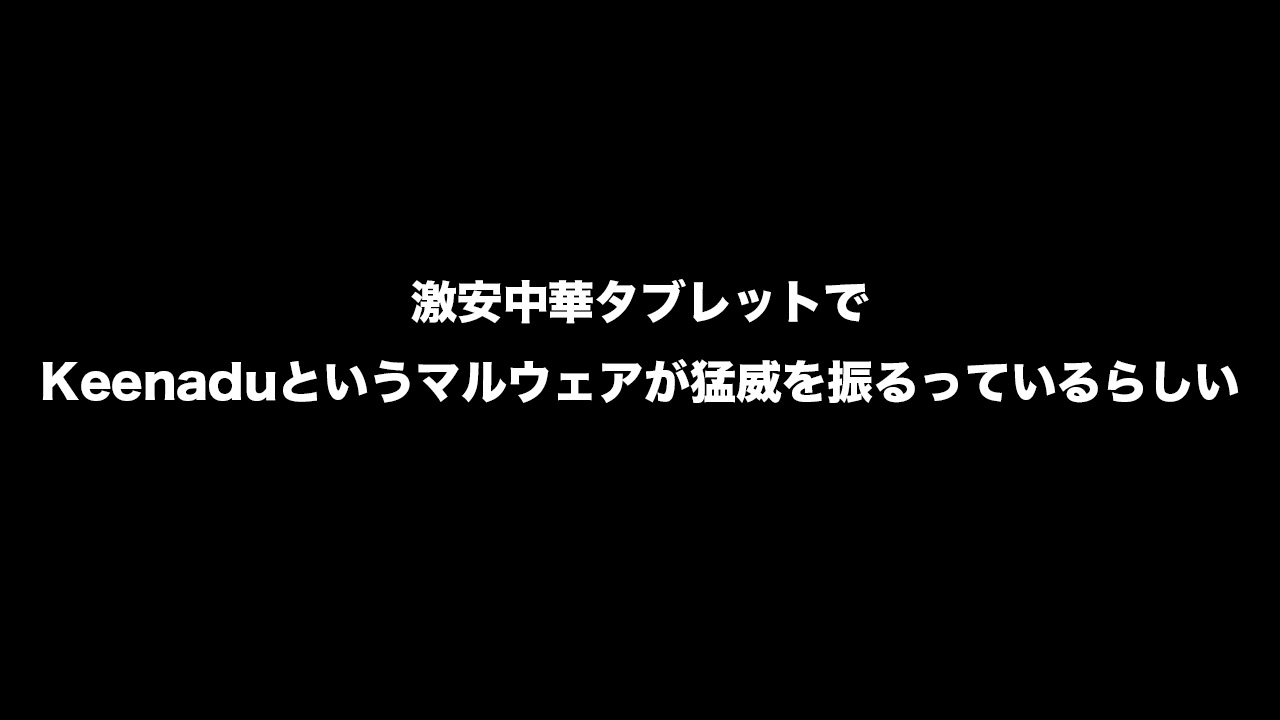 とのことで、Keenaduというマルウェアはかなり広範囲に広がっていそう。うーん、これは中華タブレット全般の信頼性が崩壊してしまいそうだな。