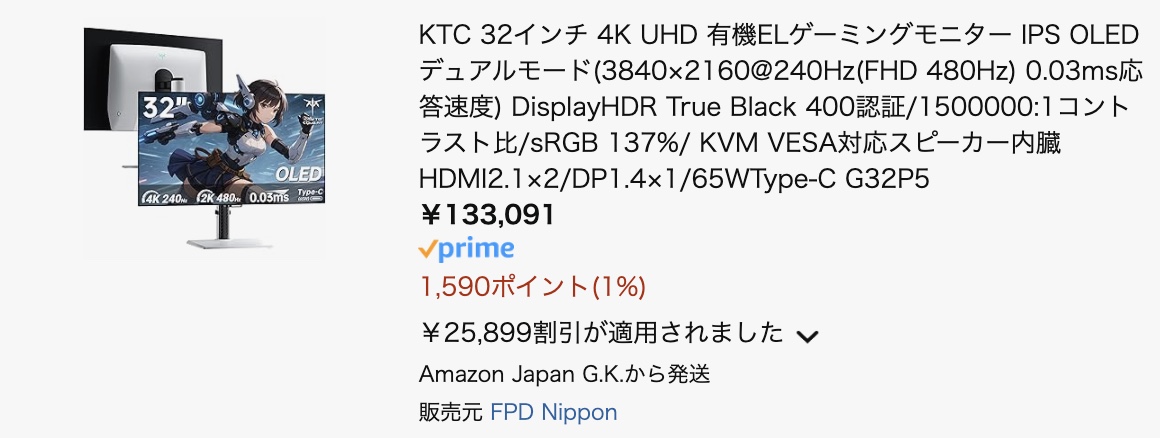 KTC G32P5って定価だと158,990円、初売りだと13万円強で購入できるんです。
