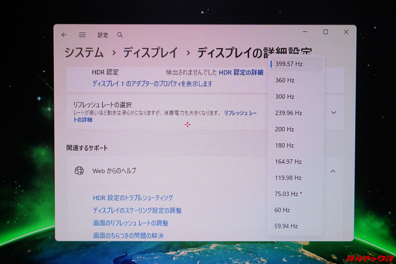 しっかり400Hz表示できる仕様なんですけど、購入前に知ってほしいことがあります。それは・・・400Hzを活かすには、400FPS出せるPCが必要です!