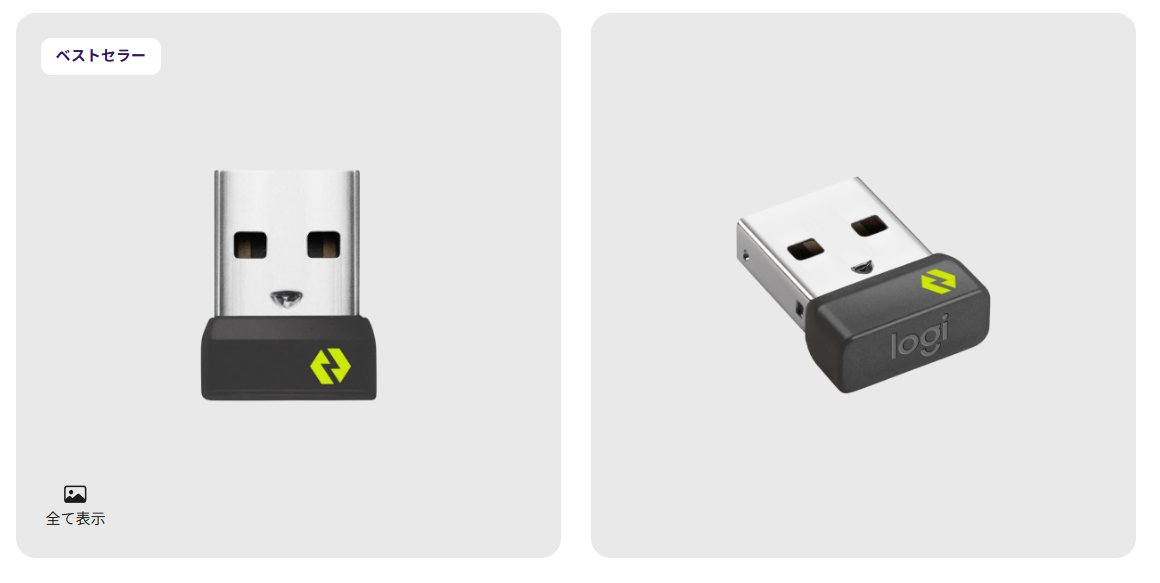 ▼別売りでUSB-A端子のBoltレシーバー(黄緑のロゴがあるやつ)を用意すれば使うことはできるので、Bluetoothでの通信性能に不安を感じるのならコイツを買うのもアリ。ってかそれしか選択肢がない。↓