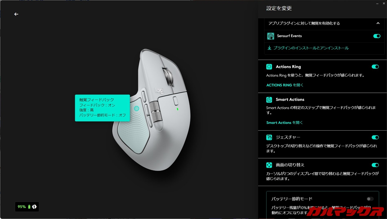 MX Master 4の新要素の1つが振動機能。マウスに振動機能を搭載するってなかなか聞いたことないですよね。筆者もそれが気になって購入したクチなんですが、これはかなり良かったです。