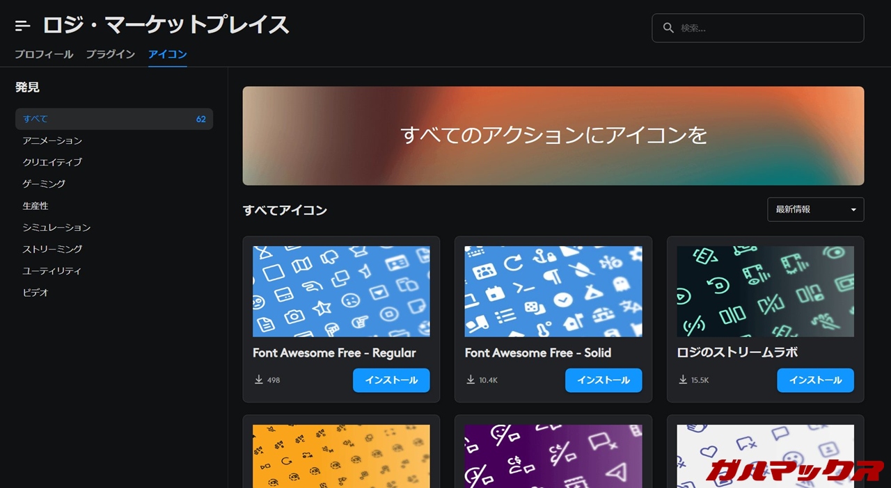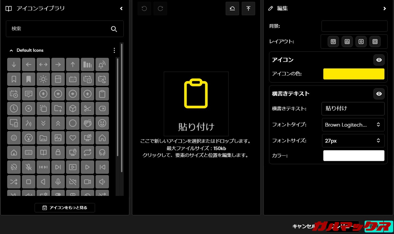 ▼ソフト内からアイコンのインストールも可能で、種類自体は予想以上に多いですねえ。これは結構驚いた。↓