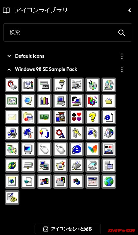 ▼オールドでレガシーでクラシックなアイコンまであった。懐かしい。小学校のパソコン室のホコリと古いプラスチックのニオイがよみがえりそうだ。↓