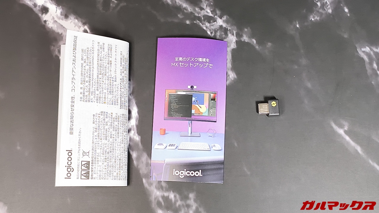 本機の落とし穴からご紹介。MX Master 4はレシーバーが付属していますが、そのレシーバーはType-C端子となります。