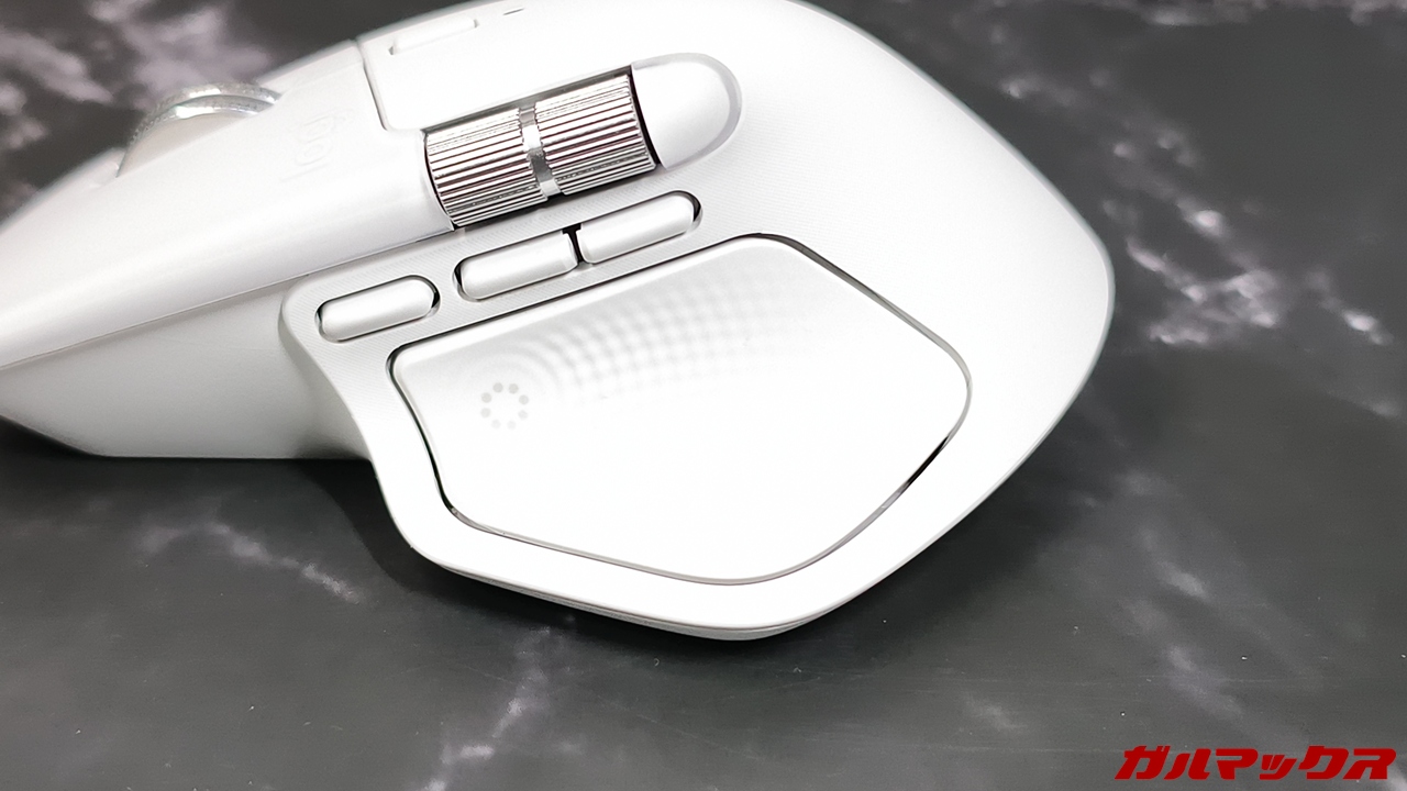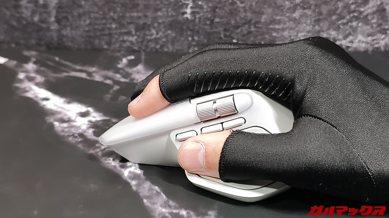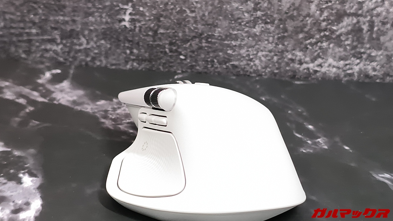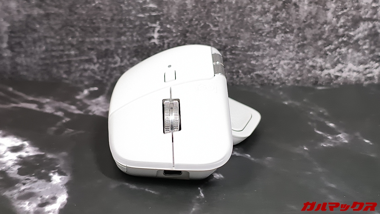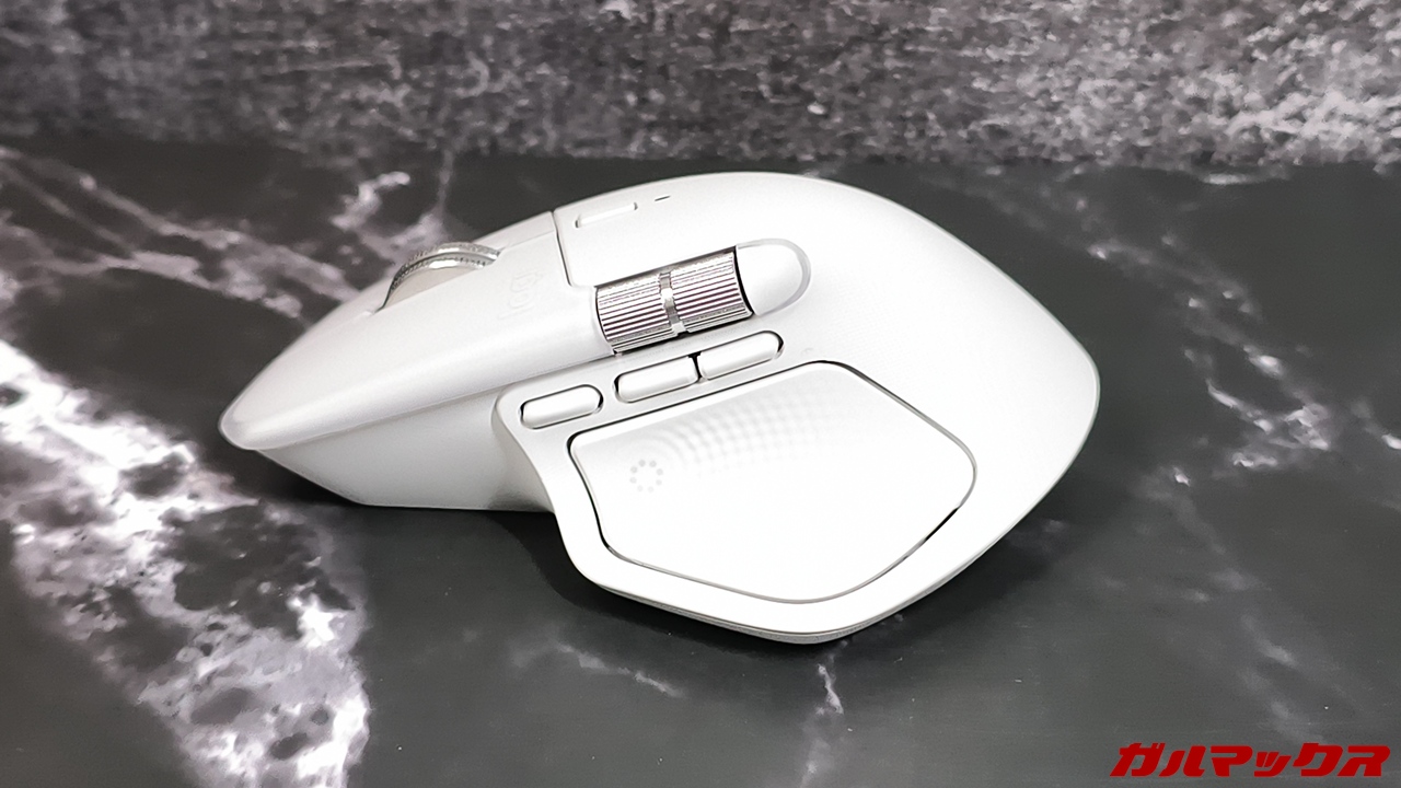 この点においては先代モデルのMX Master 3からは若干改善されている(使い比べた)んですが、それまで一般的なマウスを使ってたユーザーからすれば違和感を覚える部分になるかも。