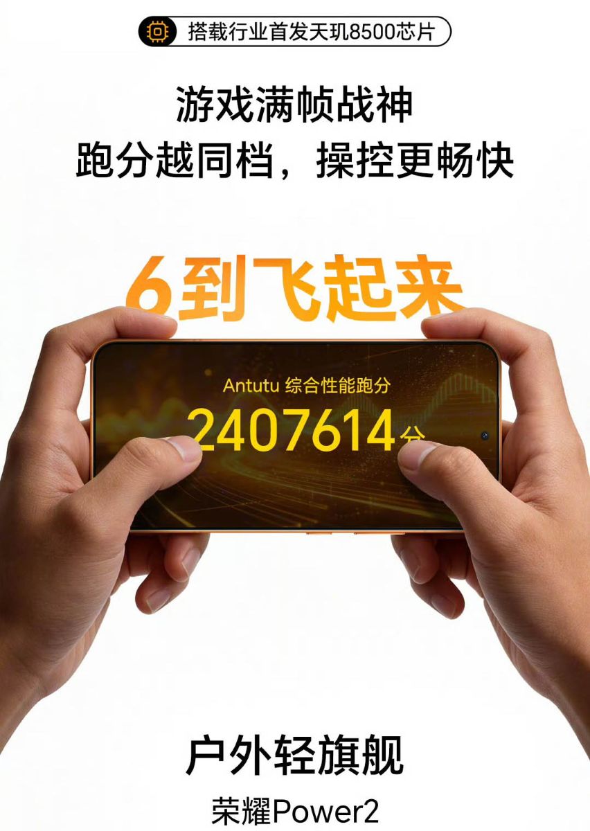 ▼SoCにDimensity 8500を搭載したHONOR Power2のAnTuTuスコア(v11)の公称値は240万点。これは同社のDimensity 9300/9300+、QualcommのSnapdragon 8s Gen 4、Snapdragon 8 Gen 3に匹敵します。↓