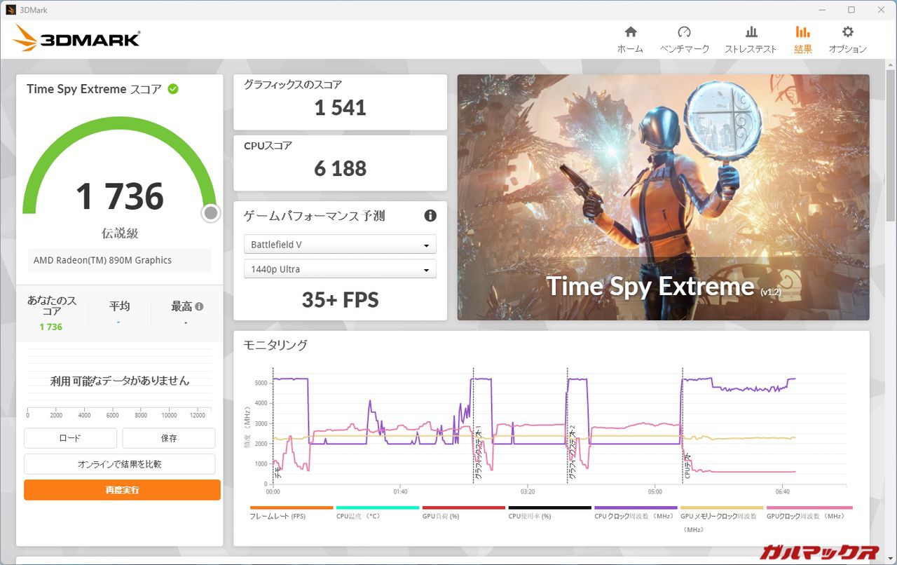 実際にフィールドでマルチプレイを行ったところ50〜60FPSといった具合で60FPSを切ることもあった。Radeon 890MでこんなにFPSが低いなんて。おかしい。が、結果は上記のとおりである。