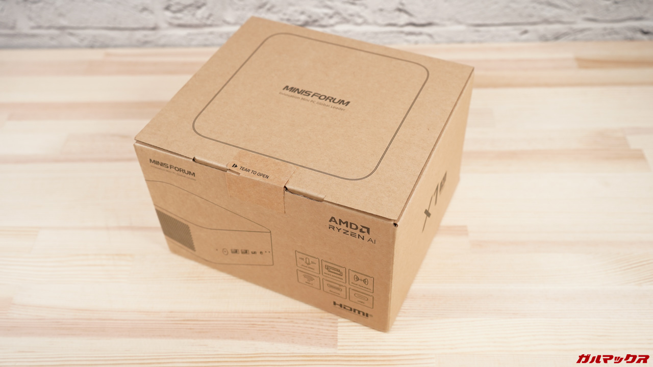 本機の筺体はMinisforum AI X1シリーズという事でRyzen 7 255モデルと同じ筺体となっている。