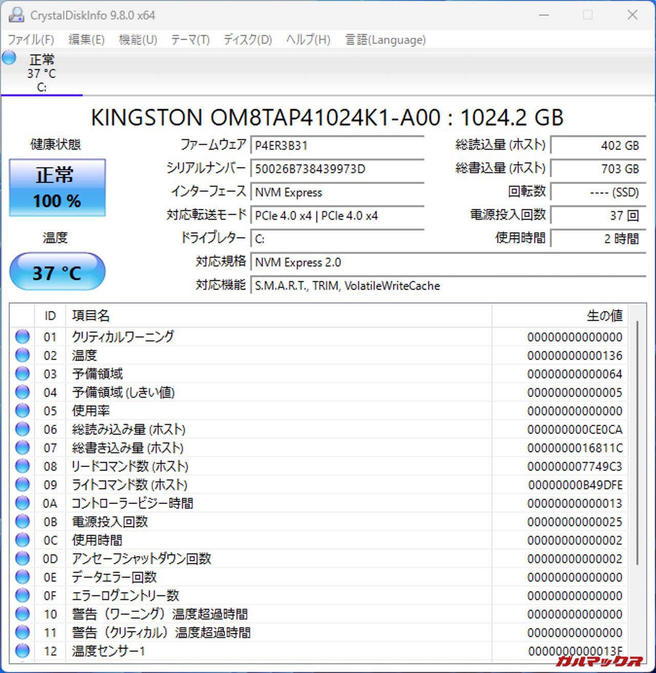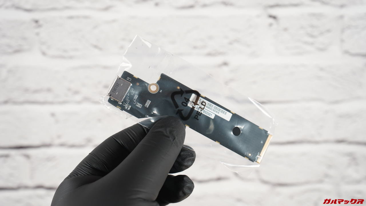 ▼ストレージは1スロット空き(OCuLinkアダプターを増設時はこのスロットを使う)、メモリは1枚差しで1スロット空き状態。つまりシングルチャネルだなこれは。↓