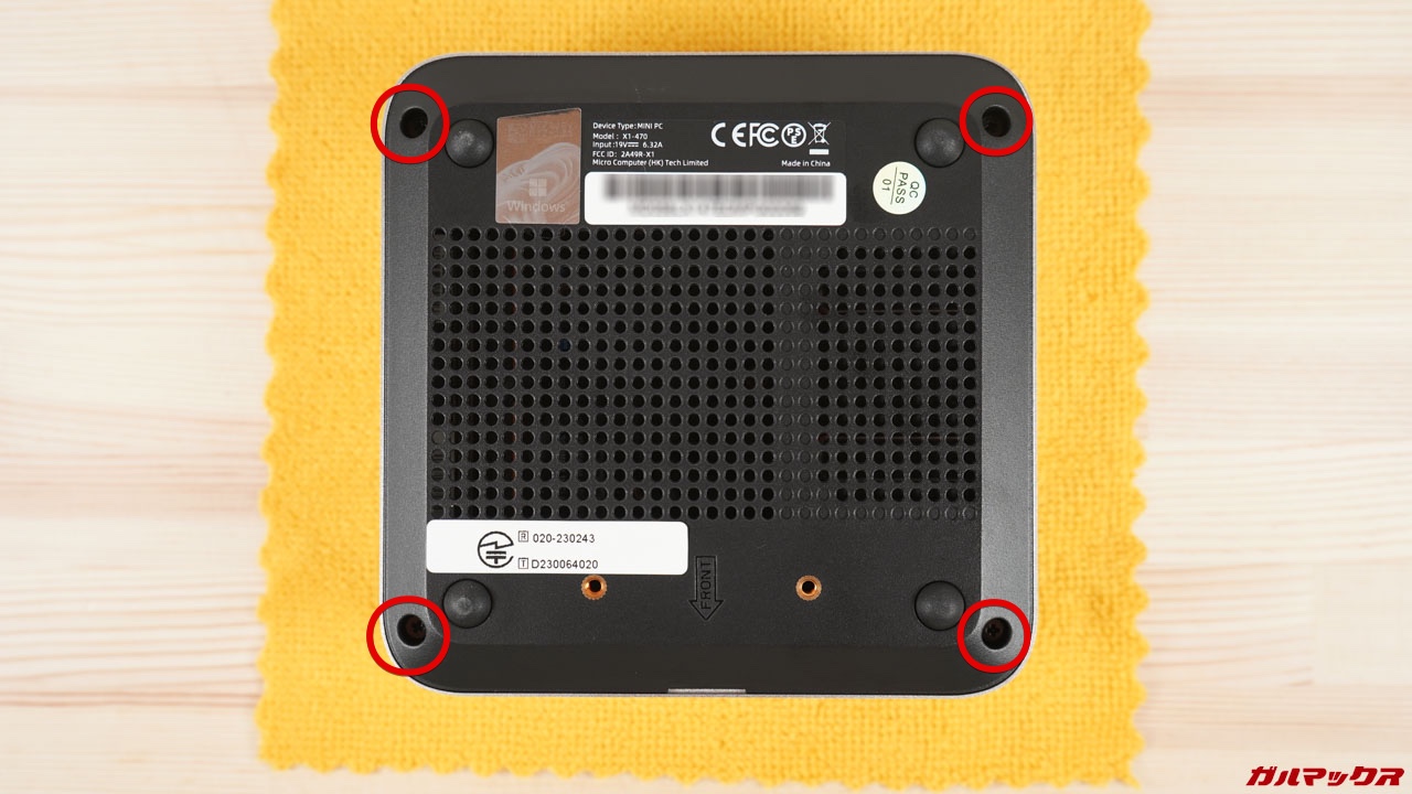 ▼本機はゴム足の下ではなく本体にネジ穴があるタイプ。なのでゴム足は外さなくてOK。↓