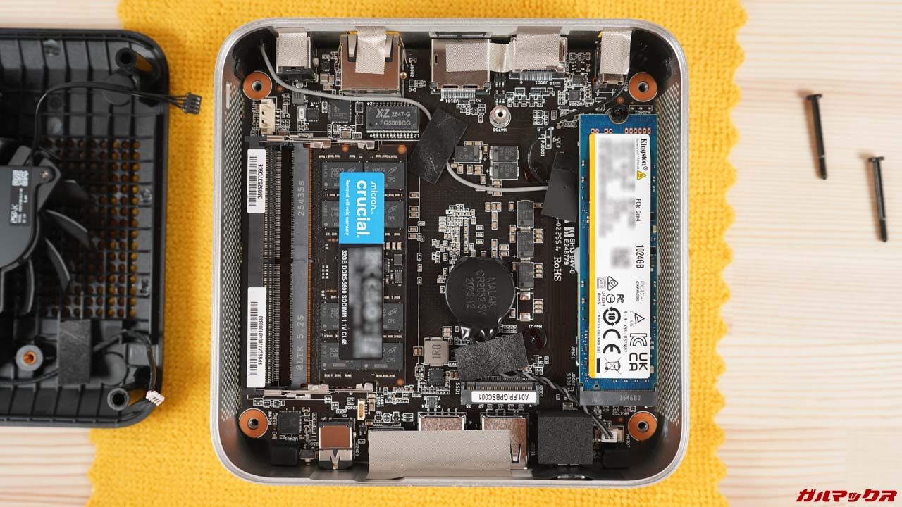 どこのご家庭にも転がっているであろうDDR5 SO-DIMMの16GBメモリを2枚ほど我が家でも見つけたので、デフォルトの32GB×1枚差しシングルチャネルから16GB×2枚差しのデュアルチャネルにしてみた。