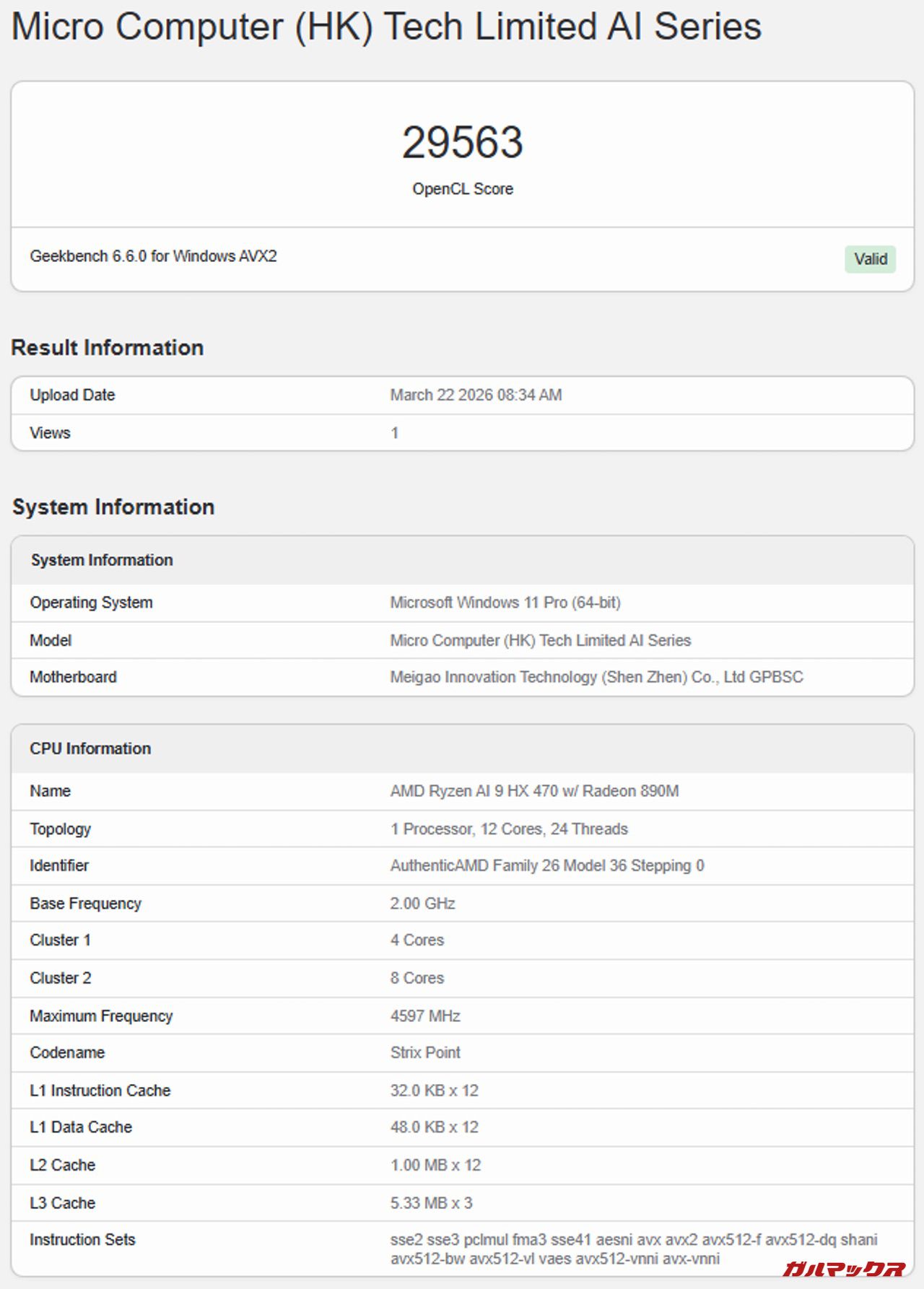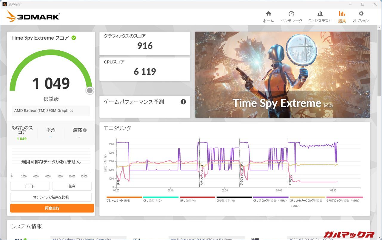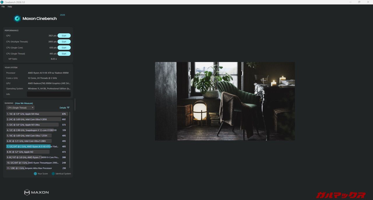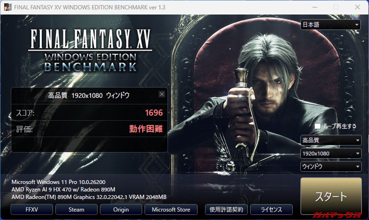 Ryzen AI 9 HX470のiGPUは強力なRadeon 890Mを備えているのでチェックしていく。(ここに記載している結果はメモリ1枚差し/シングルチャネルのデフォルト状態)