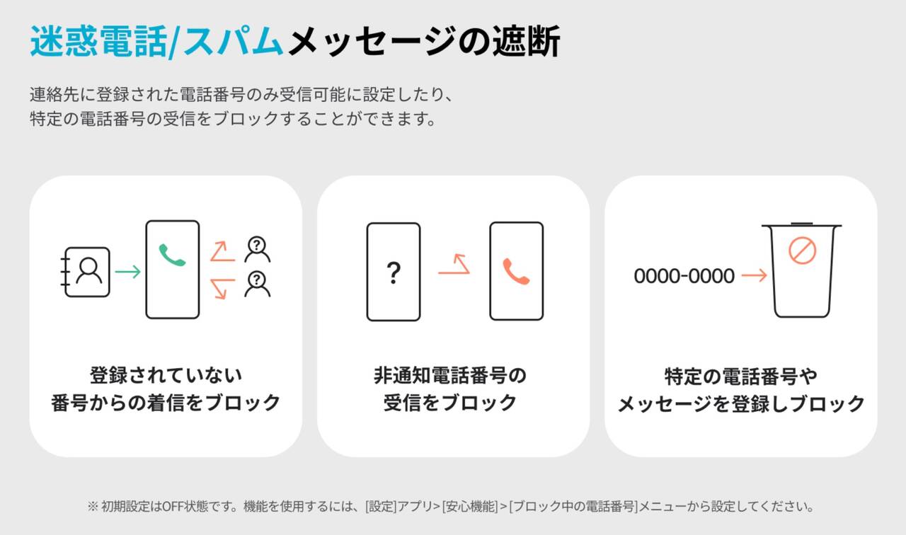 ▼迷惑電話や迷惑メッセージの遮断機能もバッチリ搭載。↓