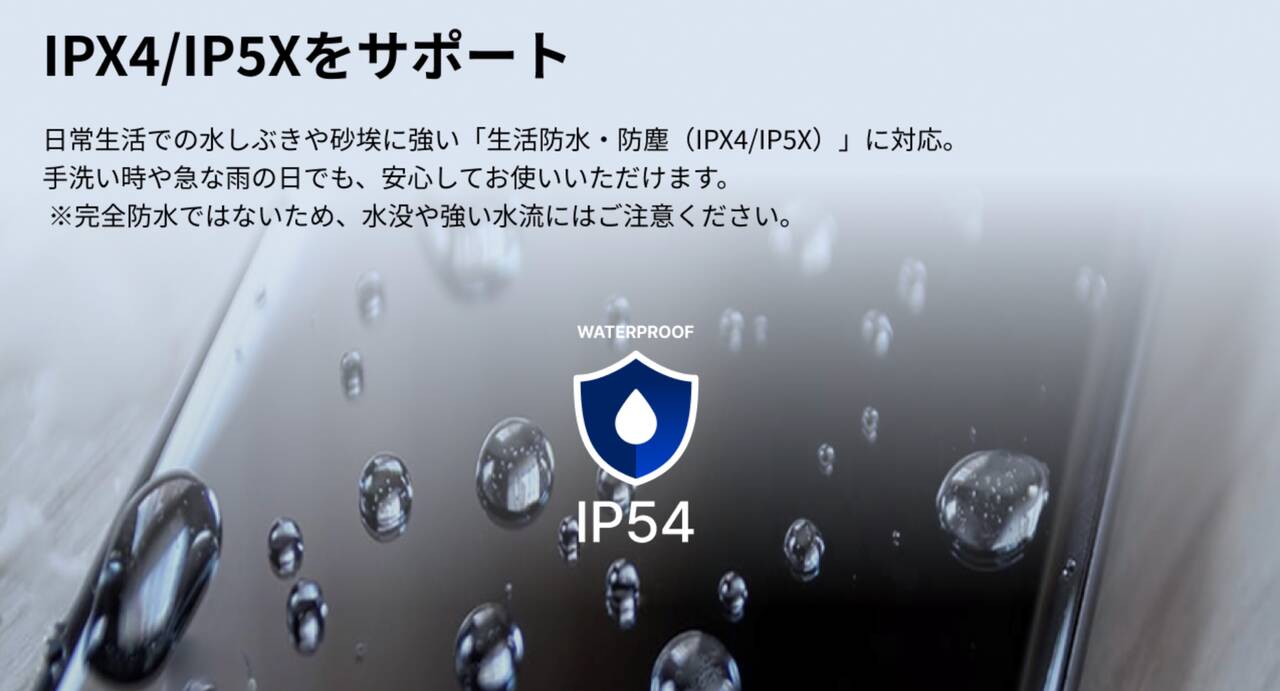 ▼防水防塵はIP54なので水しぶきや雨もヘッチャラ。但し水没はアウトなので取り扱い注意です。↓