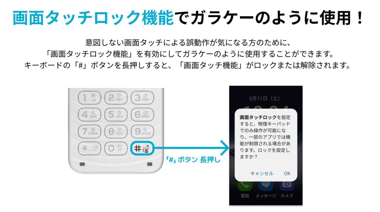 ▼まずは画面タッチロック機能。ガラケーのように使うなら画面タッチをロックしておくことで意図せぬ誤動作を避けることが出来ます。↓