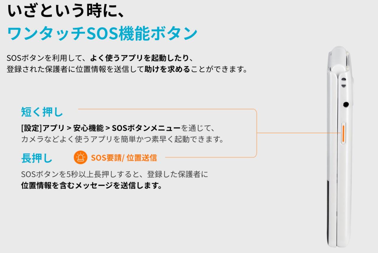 ▼本体の側面には緊急時に登録した連絡先へ素早くSOS要請を行えるボタンも搭載。↓