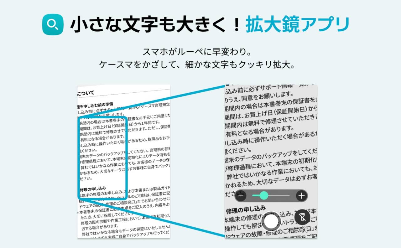 ▼小さな文字も大きく表示できる拡大鏡アプリも備わっているようです。↓