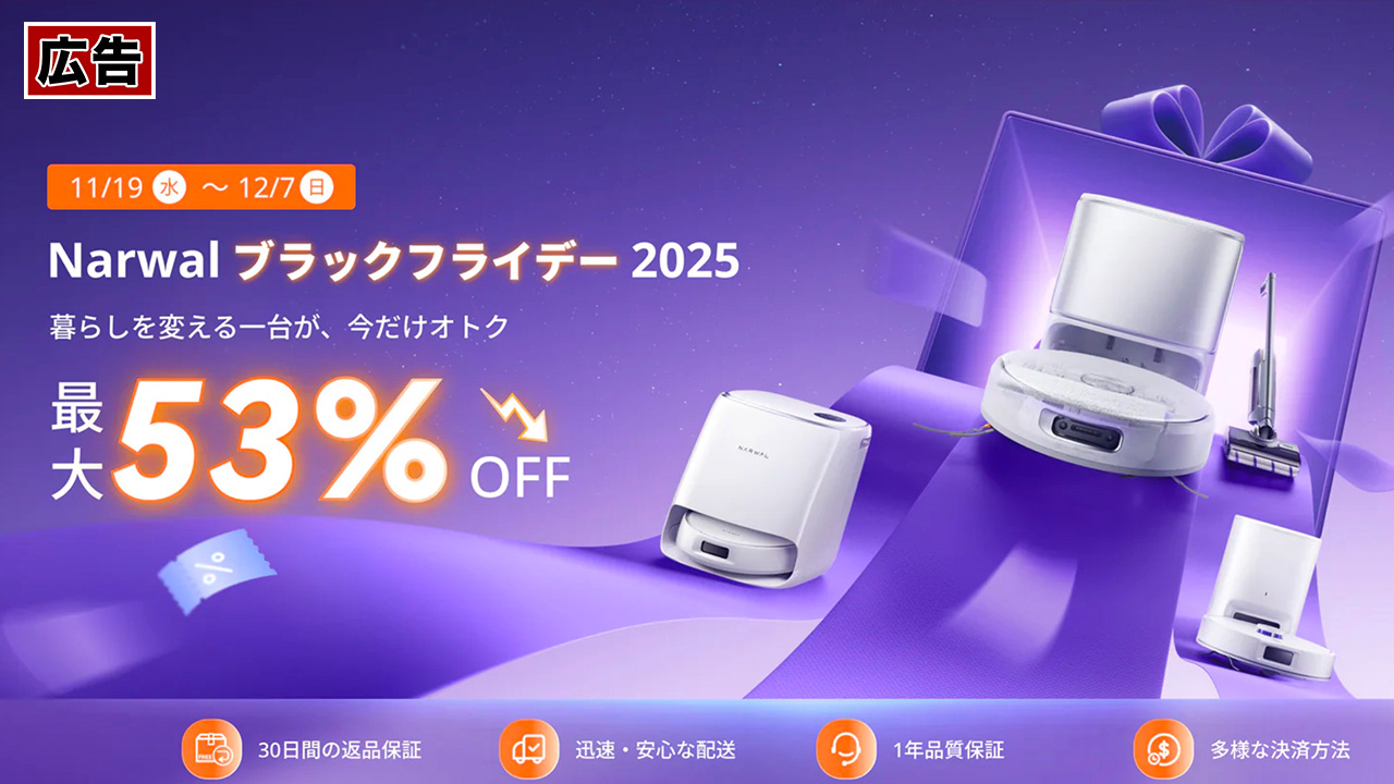 人気ロボット掃除機メーカー「narwal」がBlack Fridayセールで激安に!前回のセールもビックリするような価格だったんですけど、今回のセール、前回よりも大幅に安くなっているモデルも多数ある!!!ぜひチェックしてみて下さい!