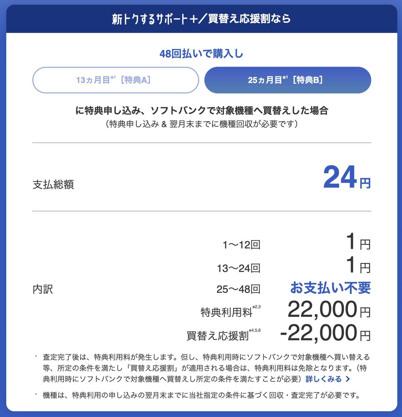 ▼なお定価は93,600円。他社からの乗り換え/新規契約は1〜24回までの支払いが月々1円(2年で24円)、2年で返却する場合は特典利用料22,000円が買い替え応援割(-22,000円)で相殺されます。↓