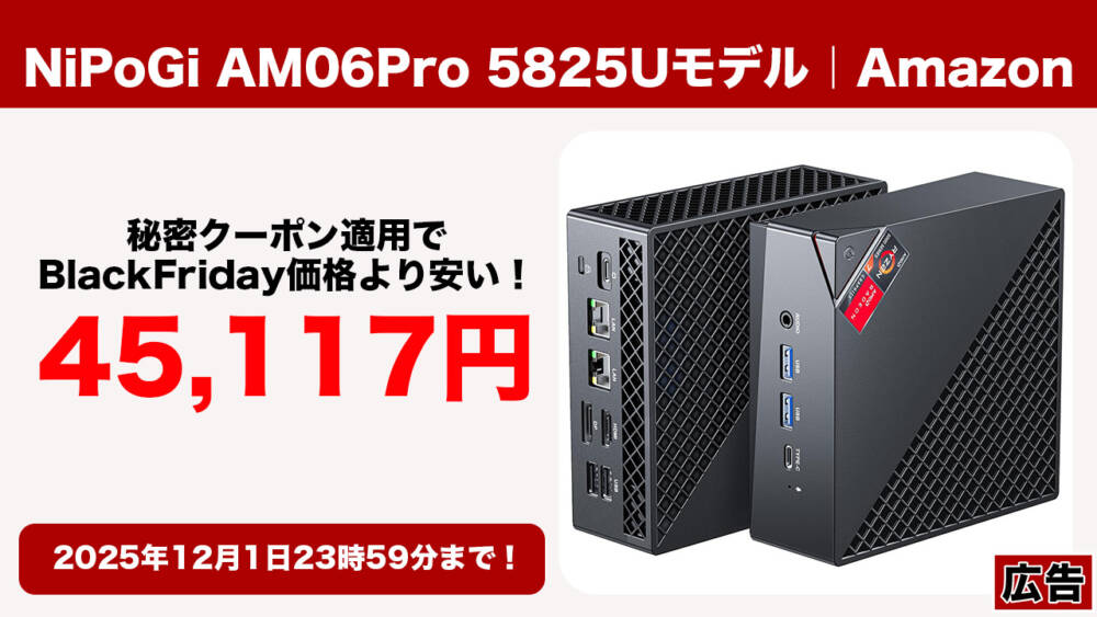 12月1日まで!ミニPC「NiPoGi AM06Pro 5825Uモデル」がBlackFriday価格より安くなるクーポン配布します!