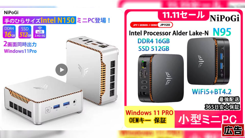 ミニPCのNiPoGi E1 N95モデル/NiPoGi E2 N150モデルもAliExpressの1111セールでお得に!