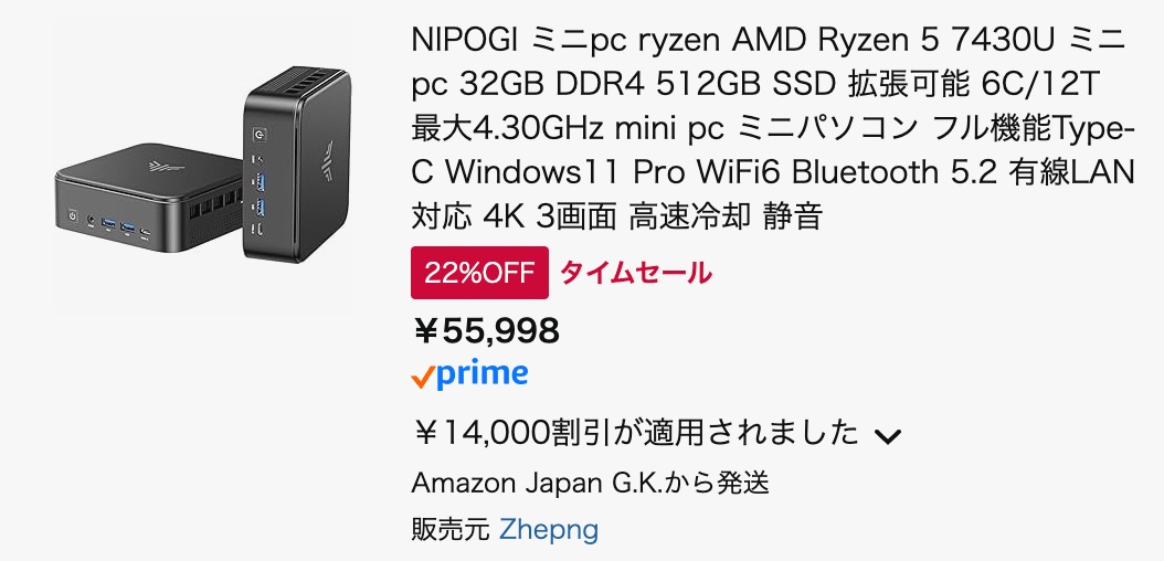 NiPoGiの使い勝手が良いモデルであるE3BのRyzen 5 7430U搭載モデルがAmazonにて55,998円で買えちゃうセールが開催中との情報をいただきましたので本記事で紹介していきます!