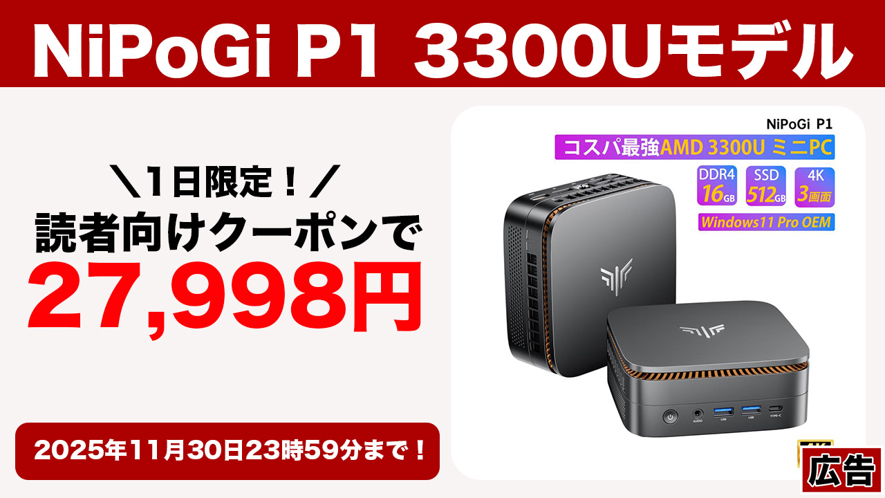 NiPoGi P1 3300Uモデルが27,998円!特徴をチェック!