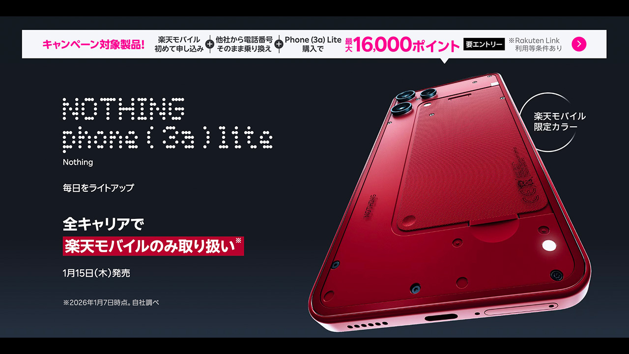 いきなり32,890円!楽天モバイルのNothing Phone (3a) Liteはレッドも選べる