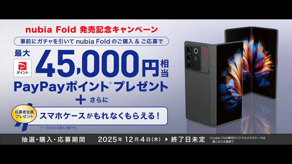 nubia Foldを買う人はハズレなしの発売記念キャンペーンに応募を!最大45,000円相当のPayPay貰える