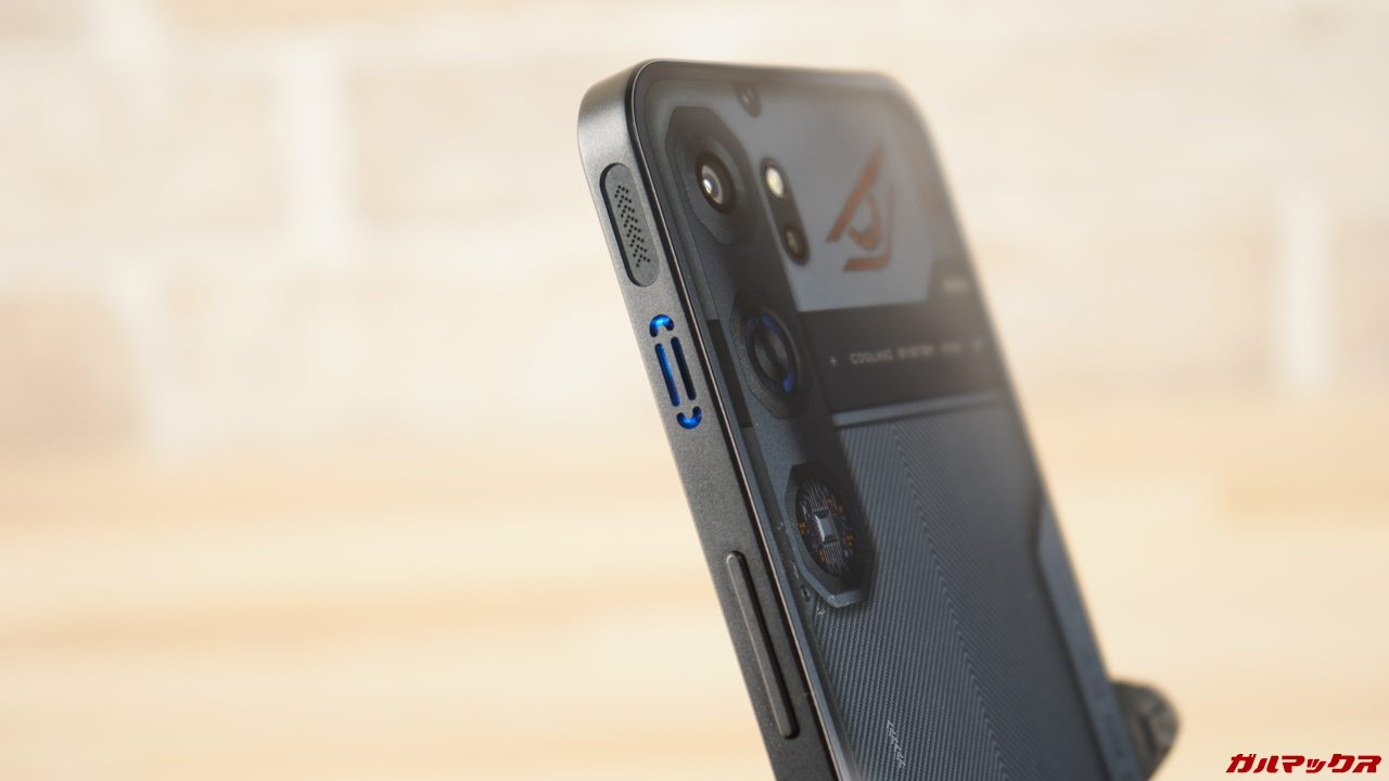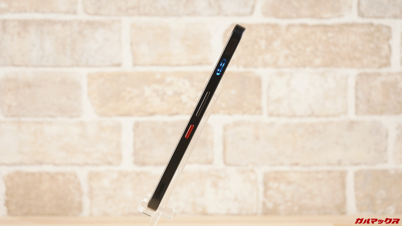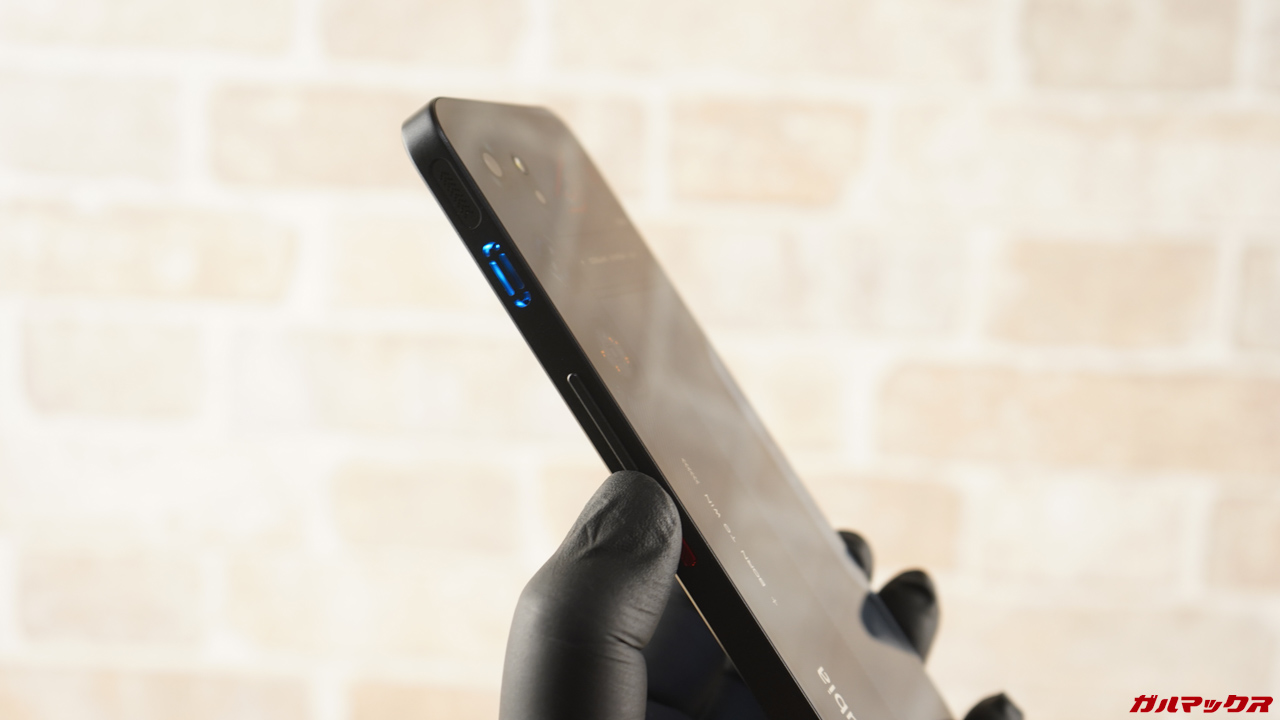▼筺体の側面にはゲーミングスマホの証でもあるLRタッチセンサーを搭載。コントローラーのように使えるのでこれがまた有利なんですよね。ミドル帯で使えるのはGoodすぎます。↓