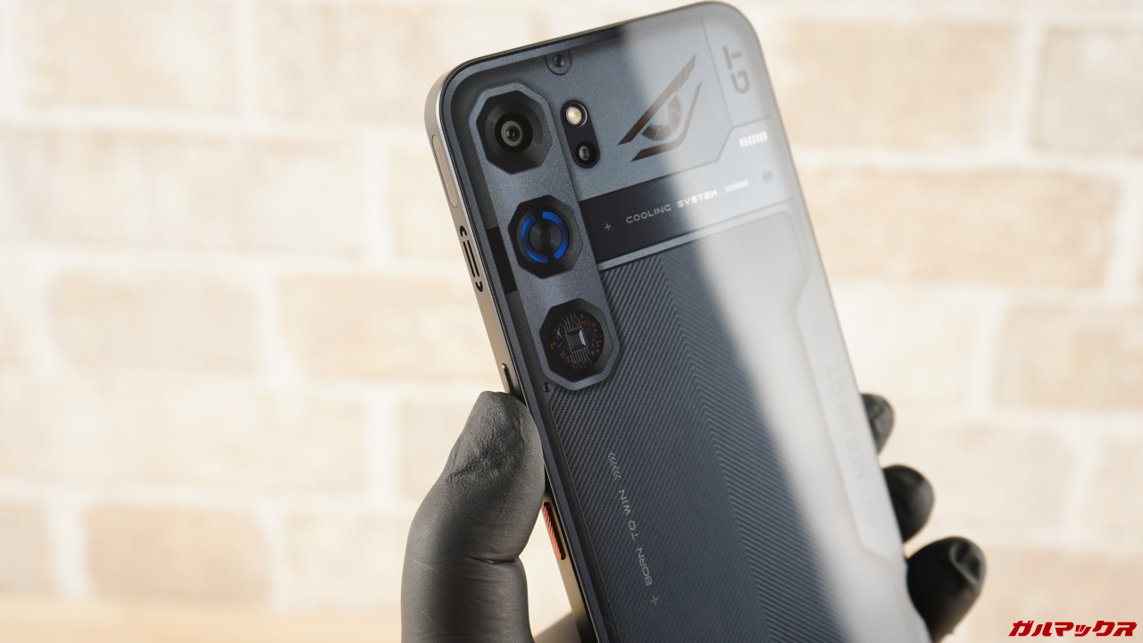 全体的な印象としてはスタンダードなスマホとは一線を画すデザインで、「おー!これがゲーミングモデルか!」とワクワクできる筺体に仕上がってました。