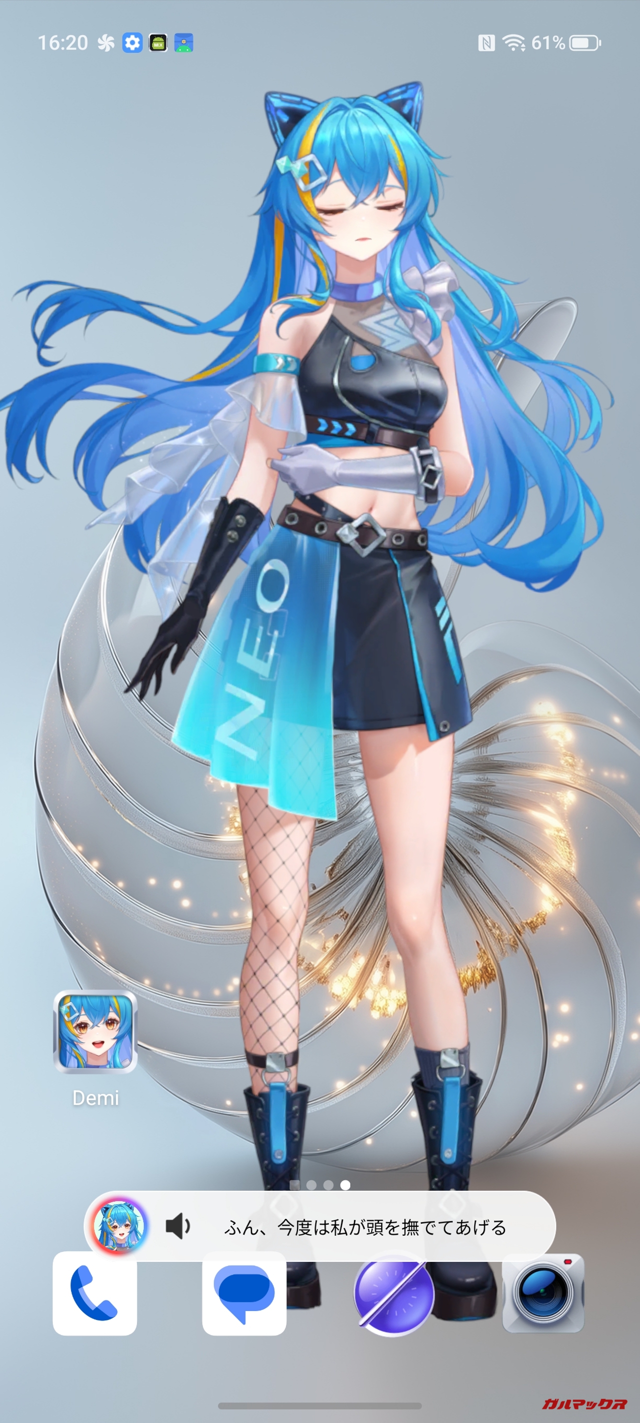▼また、ホーム画面にもDemiちゃんを表示させておけます。タップすると反応するのが可愛い。↓