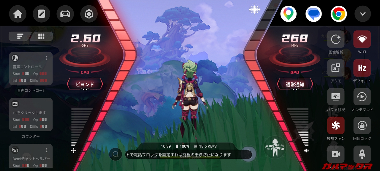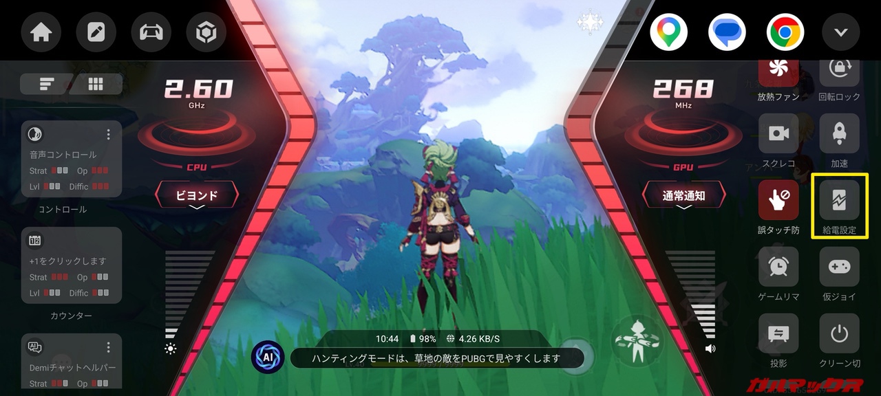REDMAGIC 11シリーズではゲームモードを起動する専用ボタンを備えていますが、nubia Neo 5 GTには見当たりません。が、ちゃんとゲームモードを搭載してるのでご安心下さい(LRタッチセンサーを長押しすることで起動)。